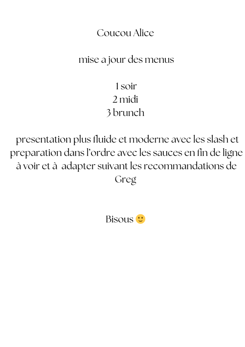 For dinner, which is available Thursday through Saturday, the menu expands with more refined choices. The Planche à partager is a great way to start the evening, perfect for sharing with friends or family. The Entrée - poisson and Entrée - Oeuf offer a choice of delicate seafood or egg-based appetizers. As for the main courses, the Plat - Poisson is a standout for seafood lovers, offering fresh fish in expertly crafted preparations, while the Plat - Viande delivers a robust meat dish for those who prefer something heartier.
